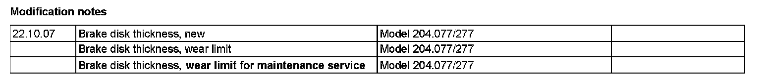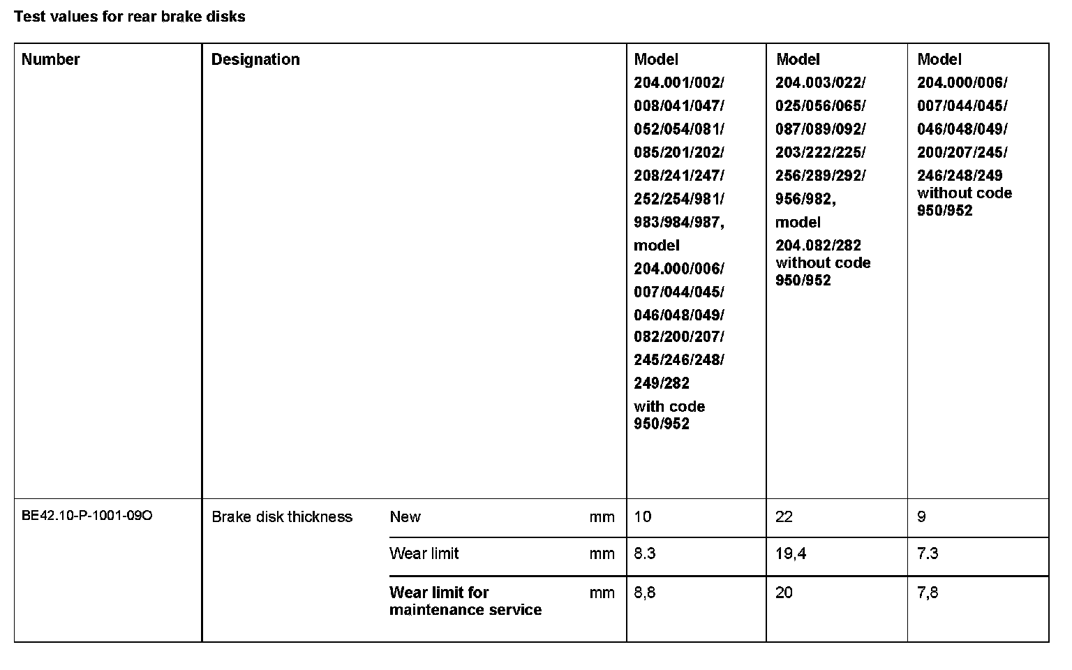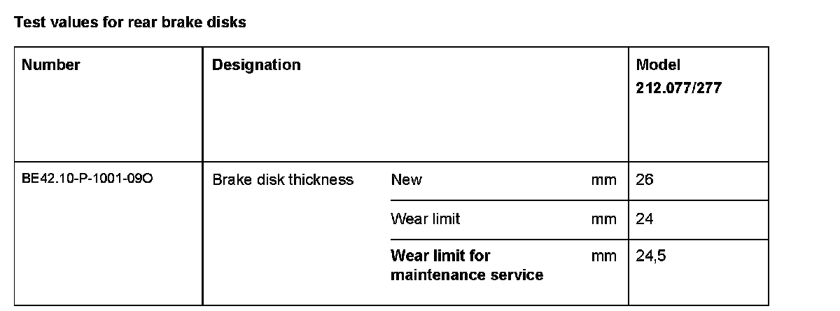 BE42.10-P-1000-09O Test values for rear brake disksModification Notes: