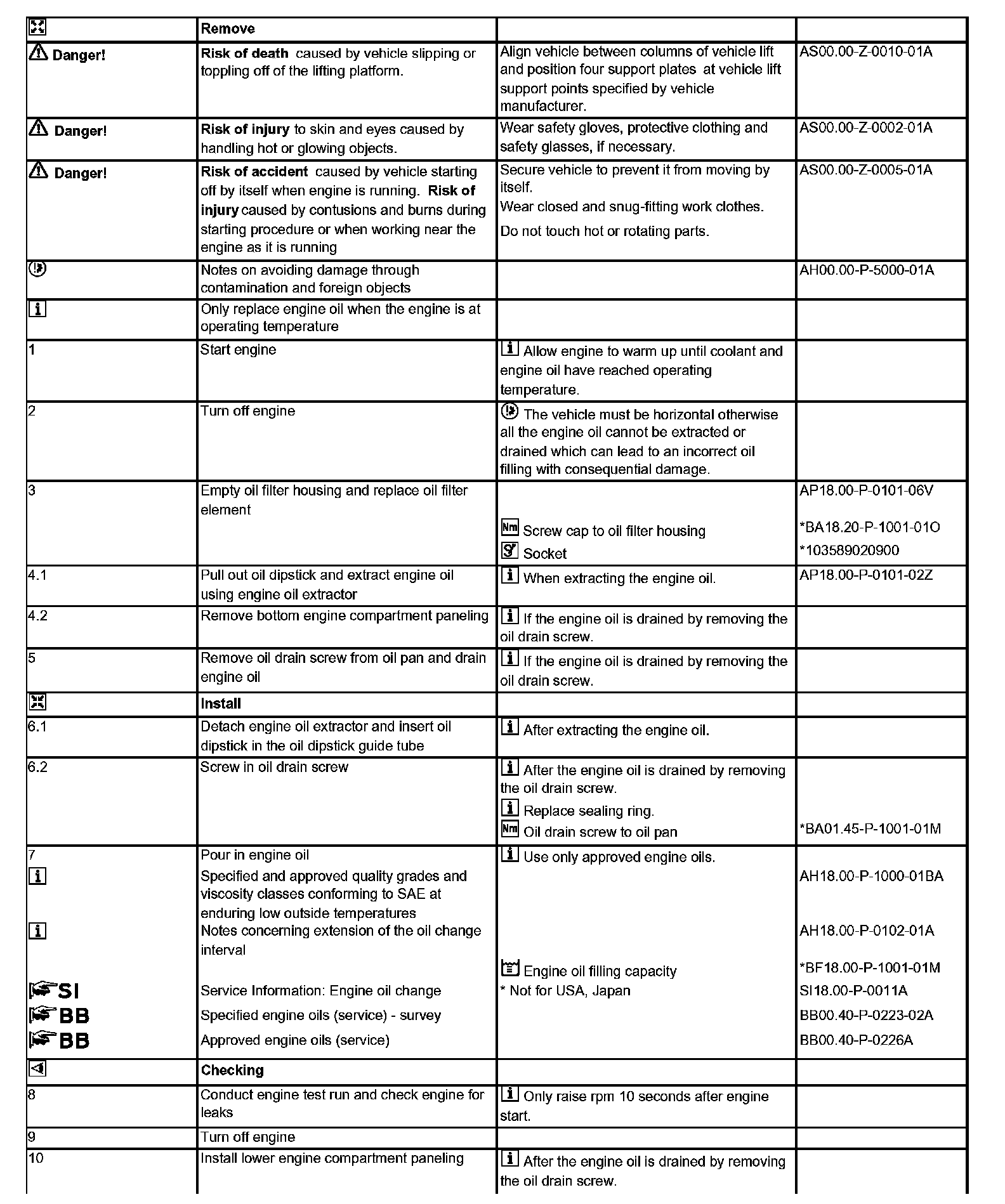 AP18.00-P-0101CWZ Engine oil and filter change