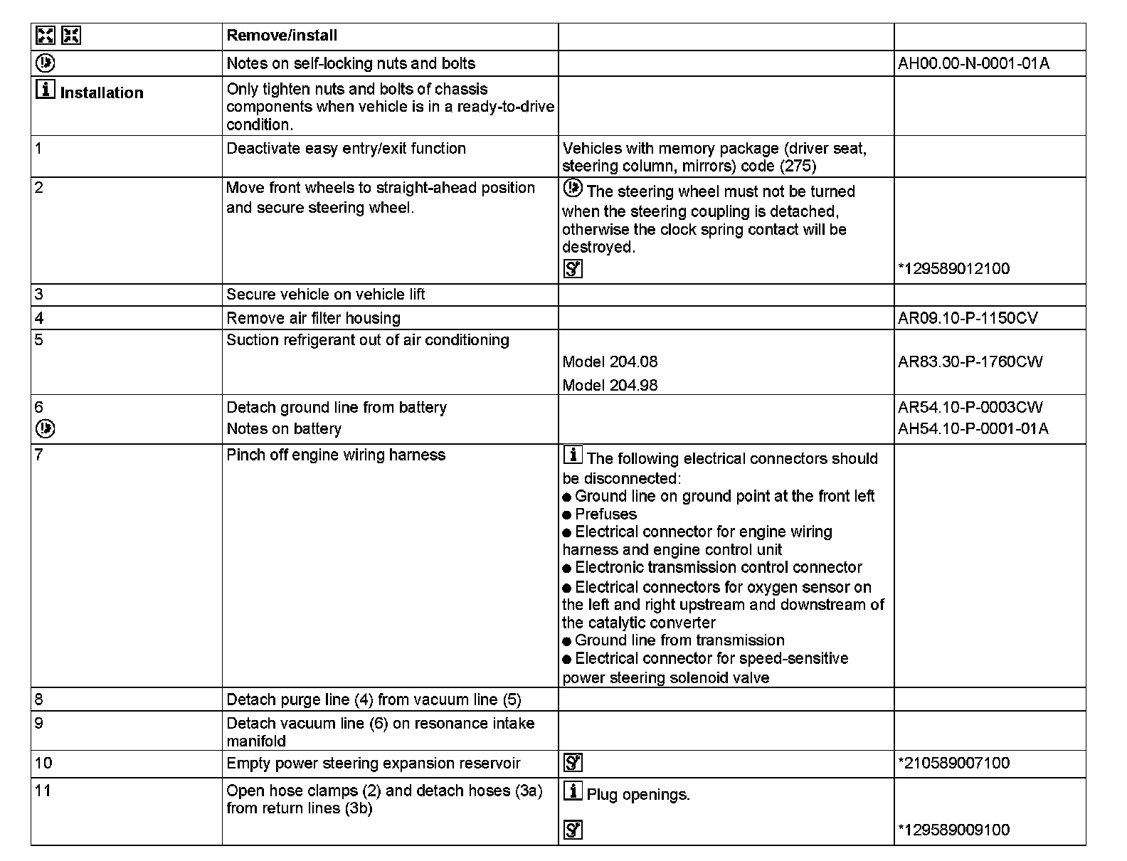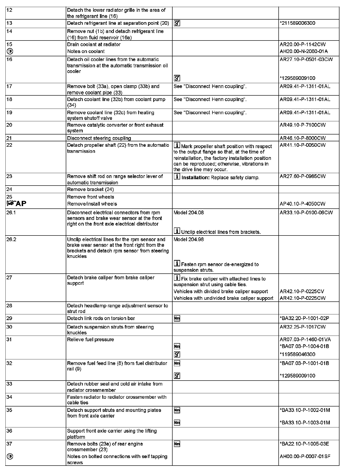 AR01.10-P-2500CWX Remove/install engine with front axle carrierComponent Identification: