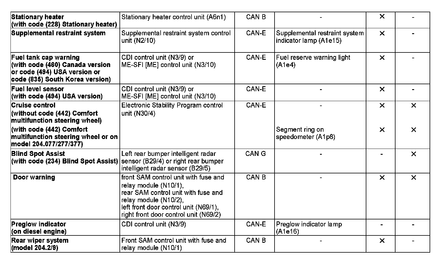 Requests to issue control and warning messages from control units which are connected to the drive train CAN (CAN C) are sent by the CDI control unit (N3/9) (with diesel engine) or ME-SFI control unit (N3/10) (with gasoline engine) via the chassis CAN to the instrument cluster.