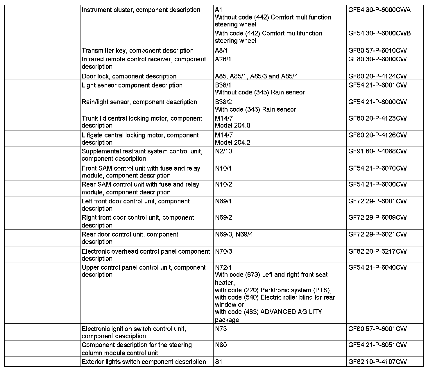 - Status of trunk lid rotary tumbler switch (M14/7s1) (model 204.0) or trunk lid rotary tumbler switch (M14/7s1) (model 204.2) via the interior CAN, supplied by the rear SAM control unit