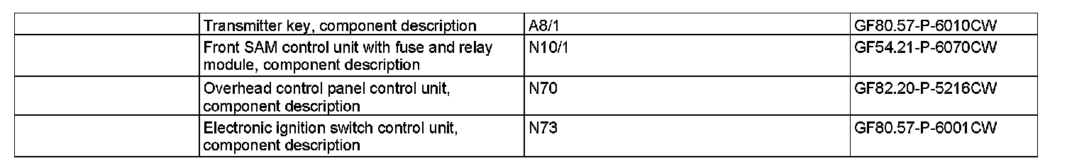 The overhead control panel control unit (N70) is an interior CAN subscriber. The requests from the overhead control panel control unit are read in via the interior CAN by the front SAM control unit with fuse and relay module (N10/1).