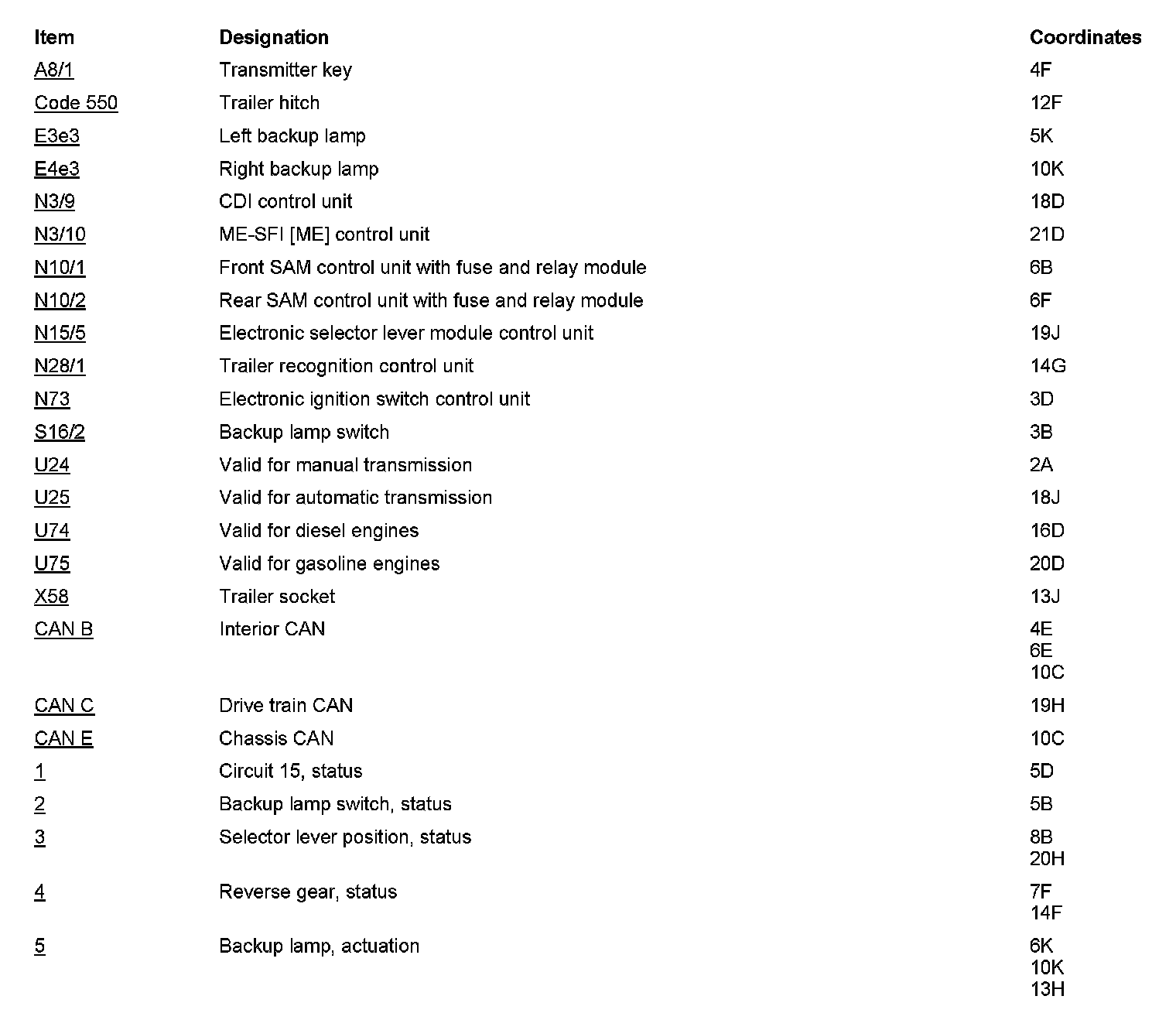 PE82.10-P-2058FAB Electrical Function Schematic For Backup Light Actuation