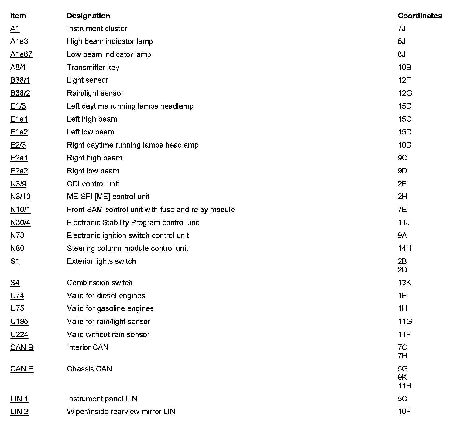 - except CODE (621) Intelligent light system (left-hand traffic)