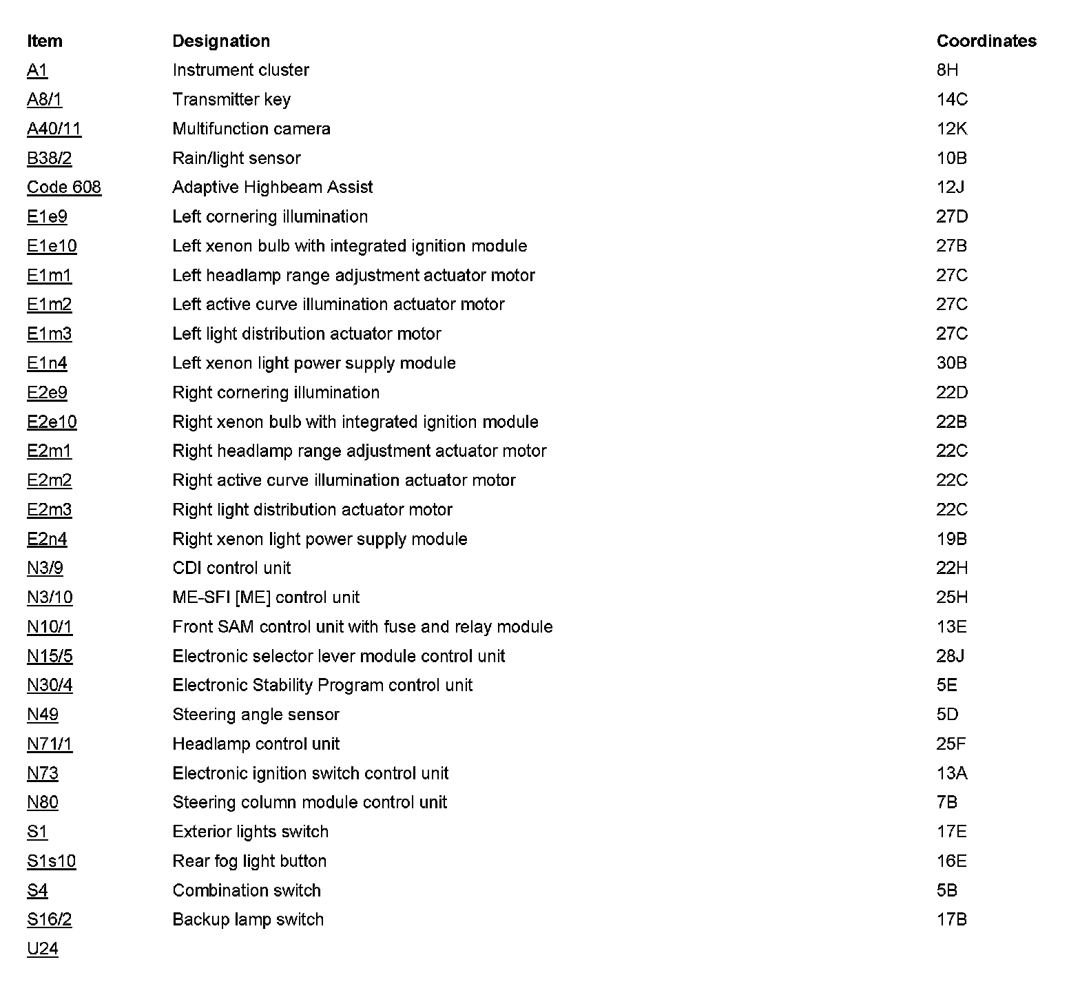 - with CODE (615) Bi-xenon headlamp unit with integrated curve illumination