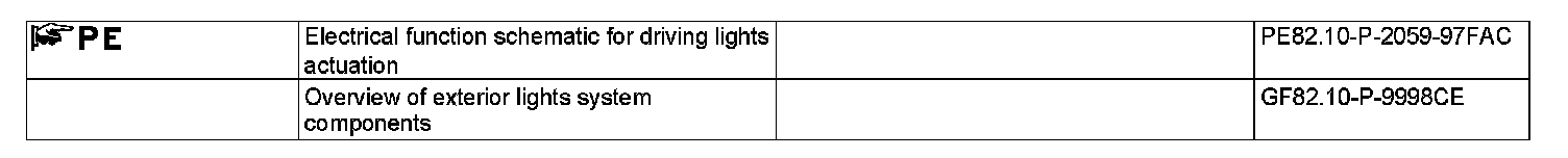 During driving lights actuation, the standing lights actuation is active; this is described in the "Standing/parking lights actuation, function" document.