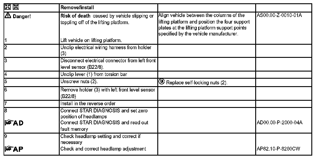 AR82.10-P-4083CW Remove/Install Headlamp Range Adjustment Front Axle Sensor