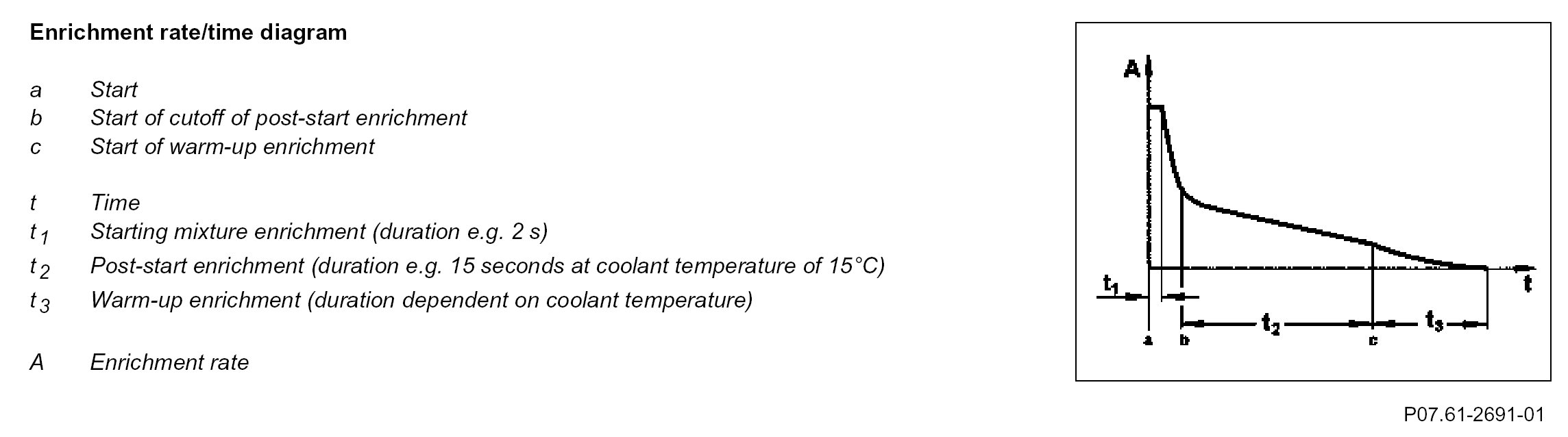 After a cold start the fuel-air mixture is enriched for a short time to ensure that the engine runs smoothly.