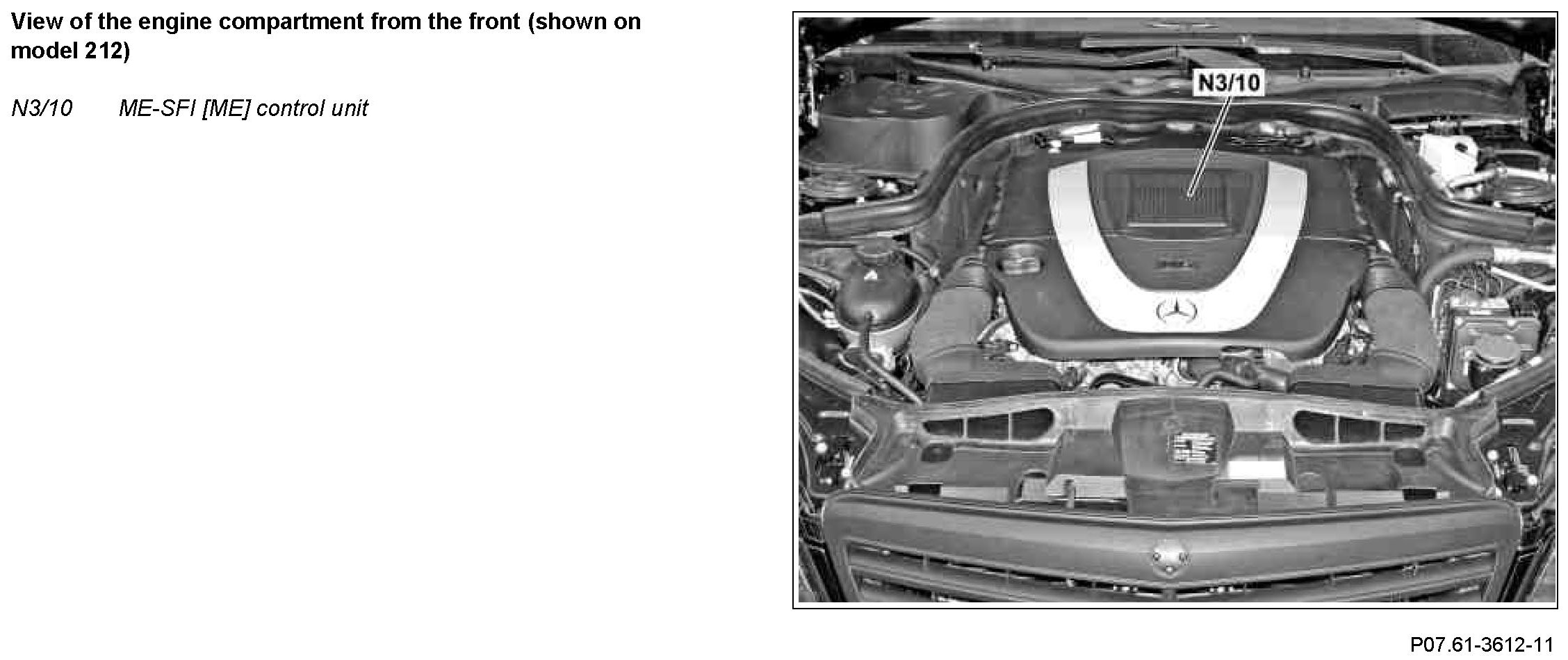 The ME-SFI [ME] control unit represents the engine control, when connected electrically with the sensors and actuators of engine 272 KE (Kanal-Einspritzung (port injection)).
