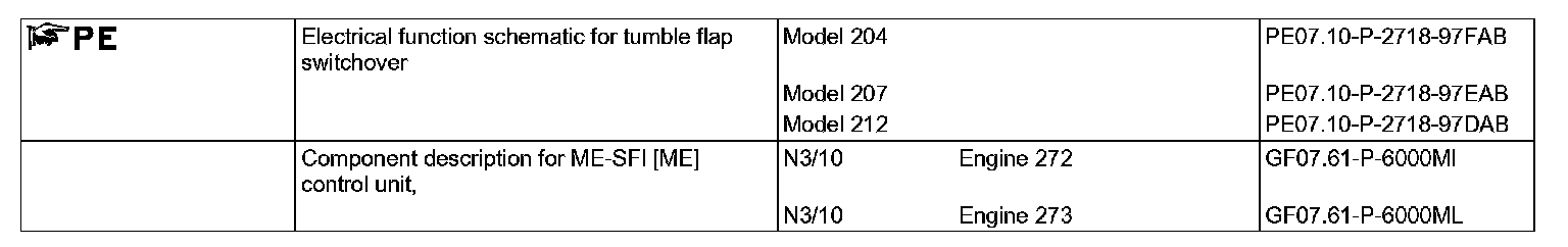 The flow rate of the intake air increases and ensures better distribution of the fuel air mixture in the combustion chamber. The ME-SFI [ME] control unit (N3/10) actuates the intake manifold switchover according to the signals from the following sensors: