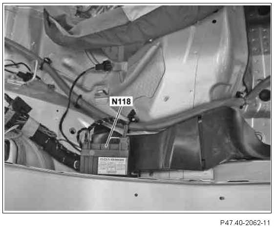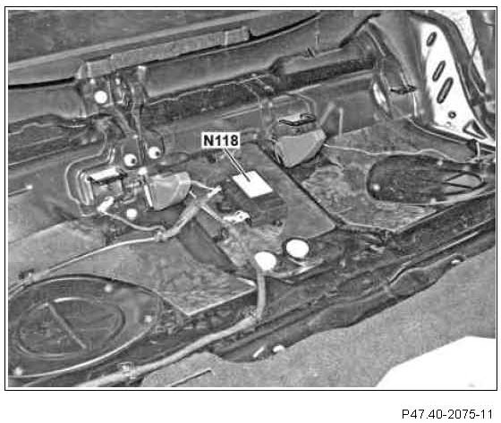 The fuel pump control unit is located in the middle under the rear bench seat.