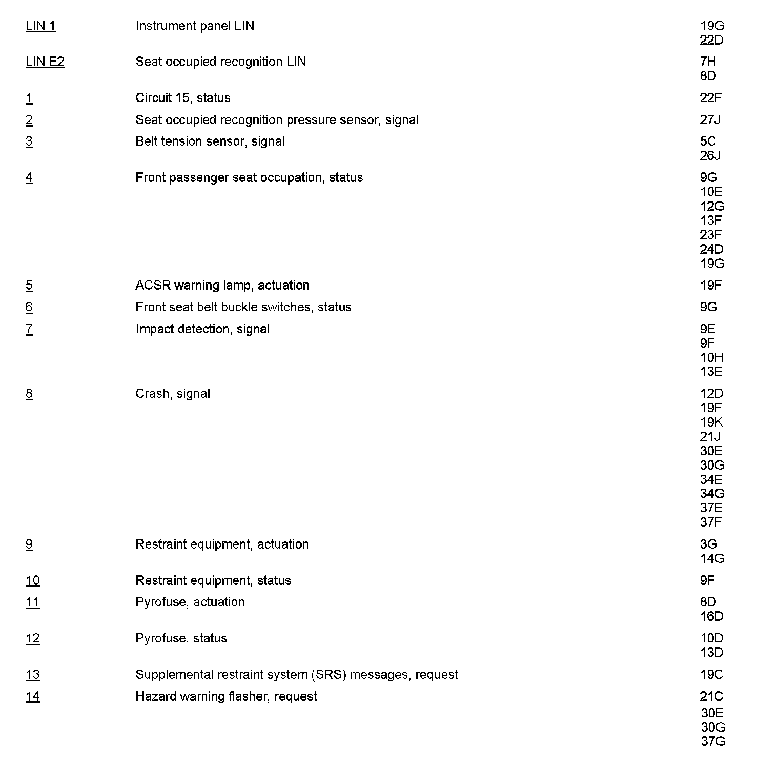 PE91.60-P-2052FAB Electrical Function Schematic, Supplemental Restraint System (SRS)