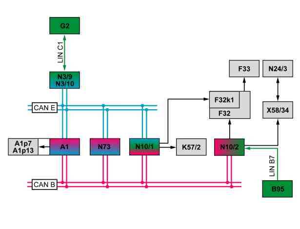 - Front SAM control unit (actuation of on-board power supply management support (with code (B03) ECO start/stop function)