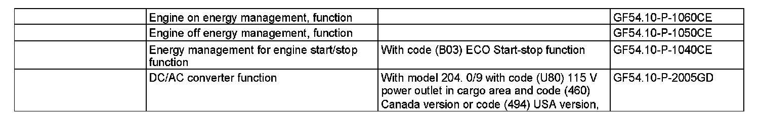 ^ DC/AC converter function (with model 204.0/9 with code (U80) 115 V power outlet in cargo area and code (460) Canada version or code (494) USA version)