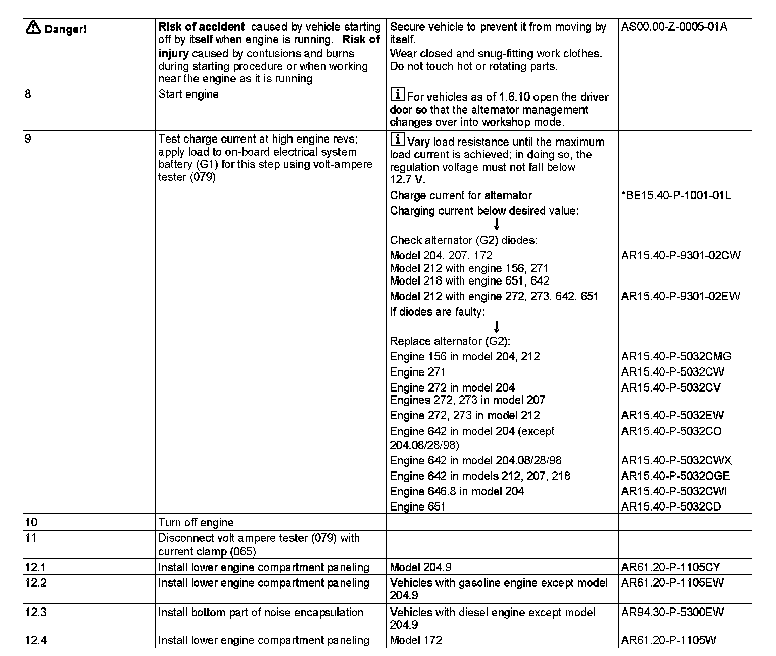 ENGINES 271, 272, 273, 642, 651 in MODEL 207
