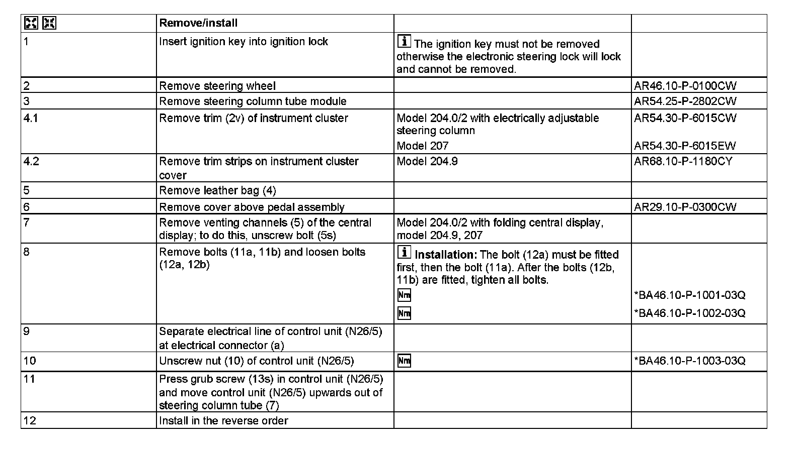 AR46.10-P-0910CW Remove/Install Electronic Steering Lock