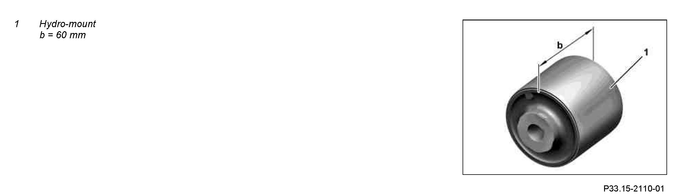 4 Rotate strut rod (2) and align hydro-mount (1) on chamfered side (chamfer 2 mm x 45 degrees) of strut rod (2).