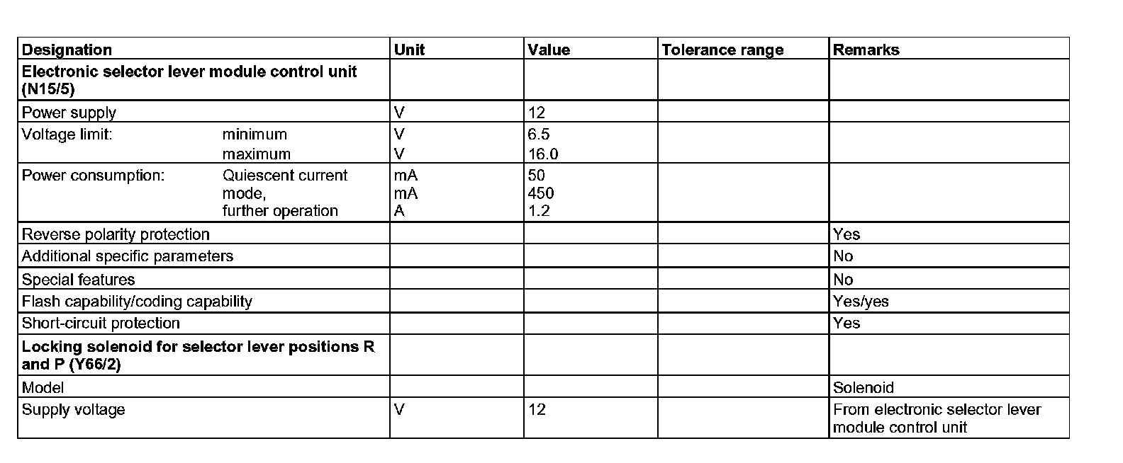 - Locking solenoid for selector lever positions R and P (Y66/2)