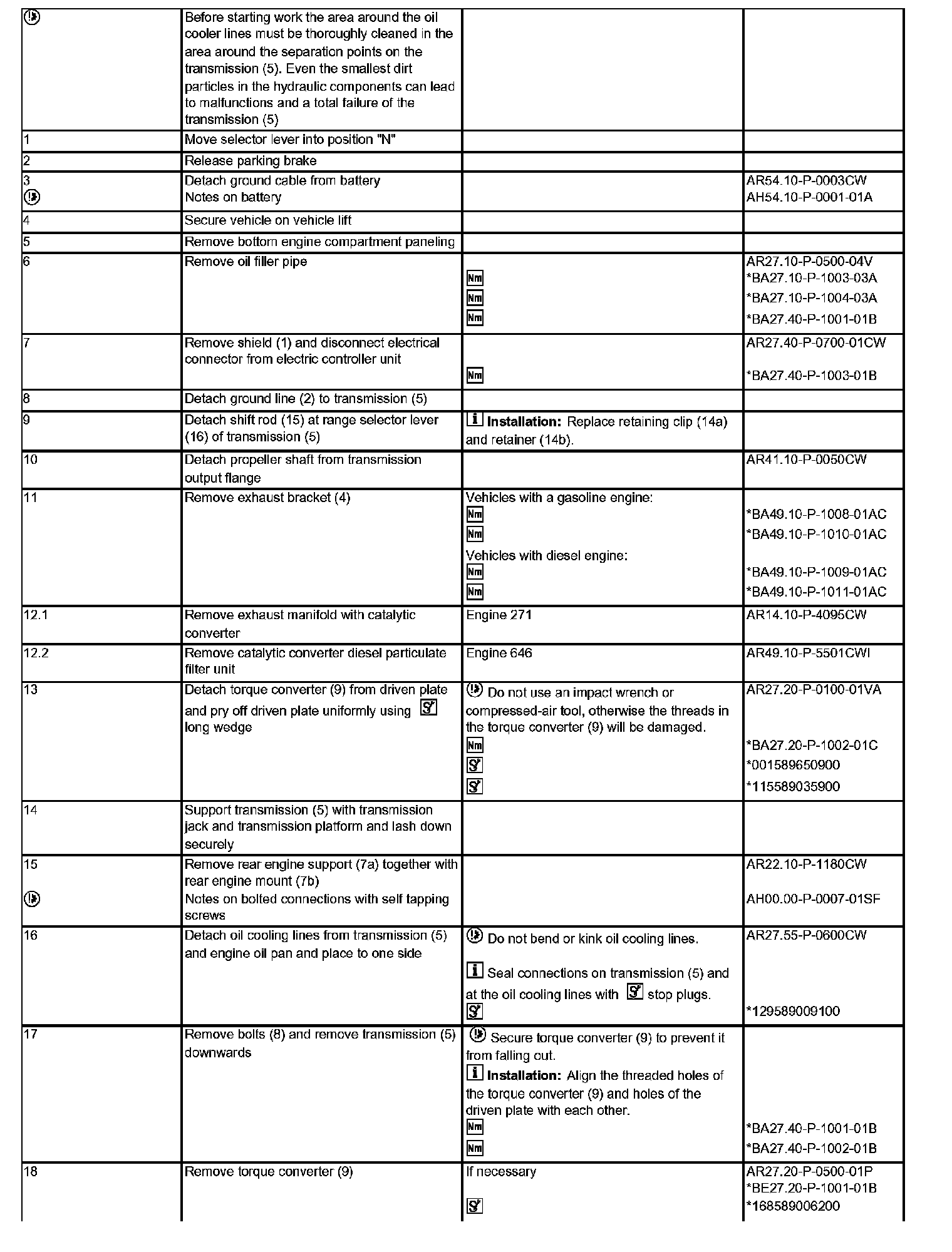 AR27.10-P-0500CW Remove/install transmission with torque converter -