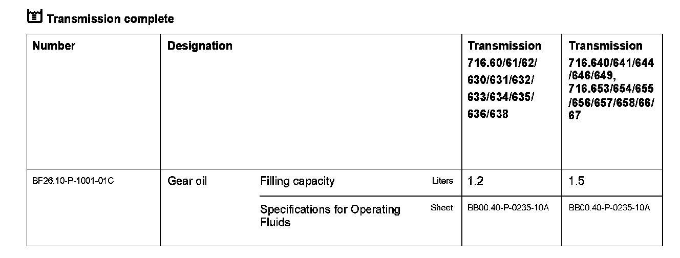 TRANSMISSION 716.6 in MODEL 204, 207