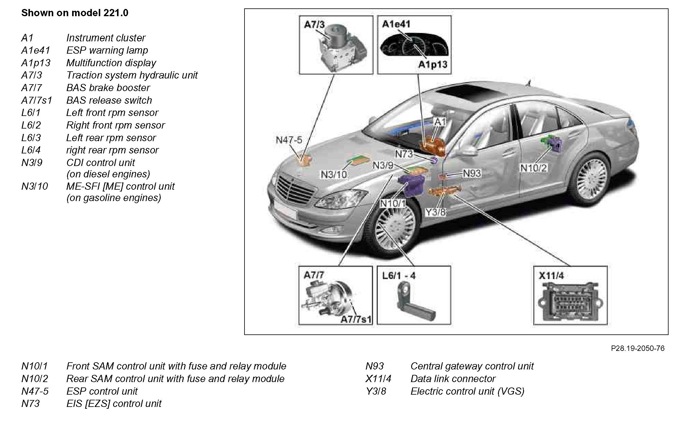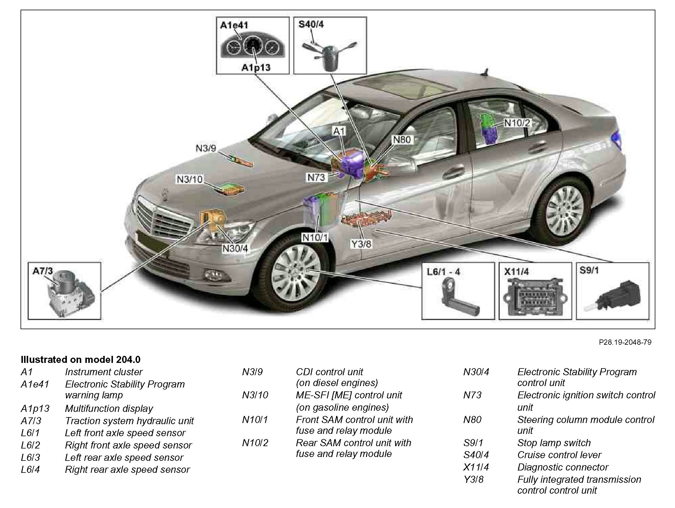 GF28.00-P-0001-01AV Automatically regulated all-wheel drive (4MATIC), location of components