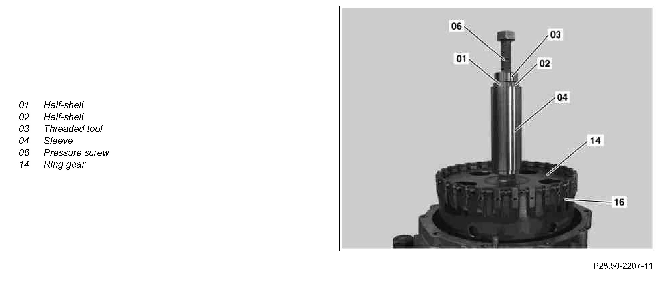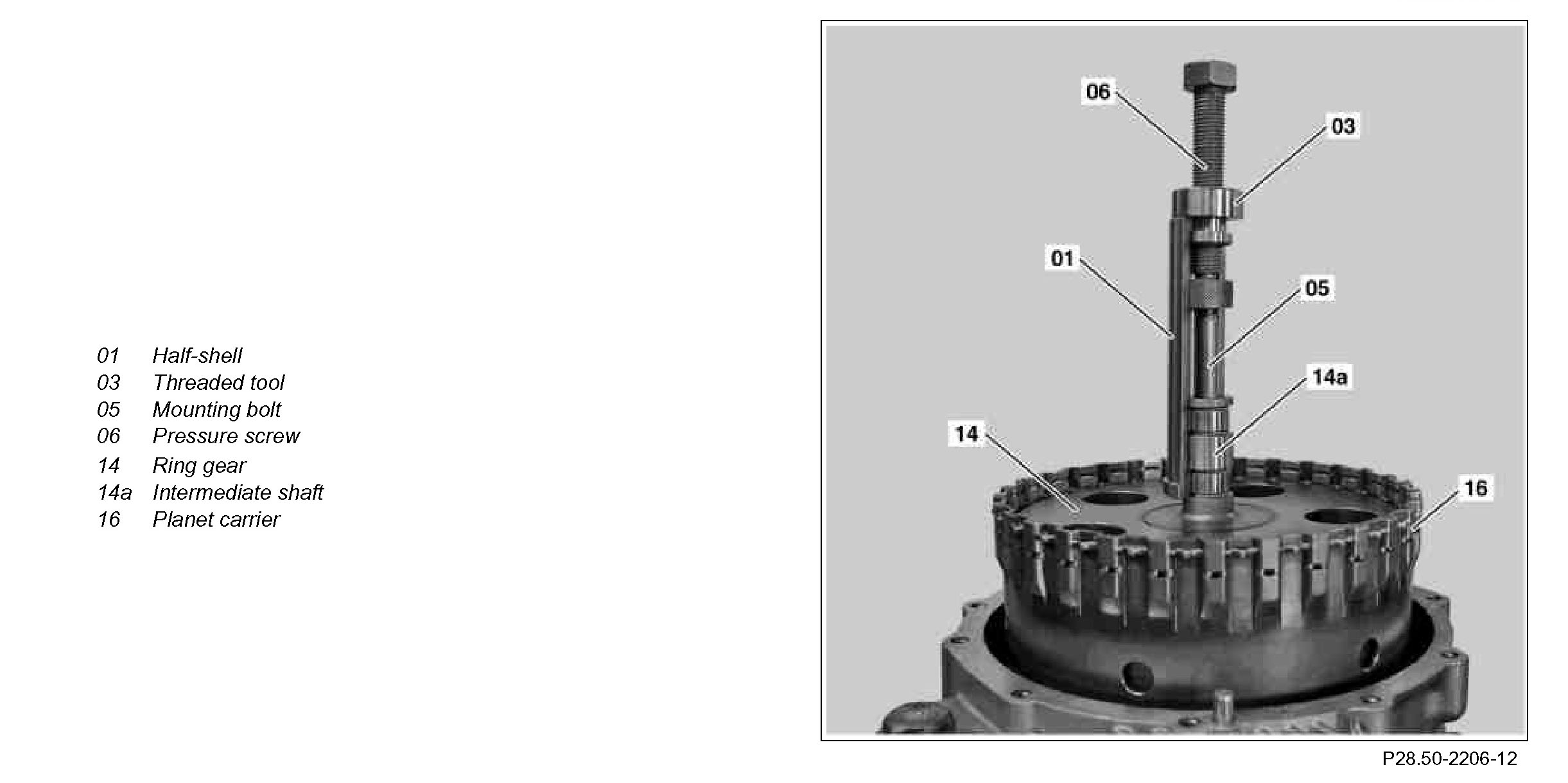 2 Attach half-shell (01) to intermediate shaft (14a).