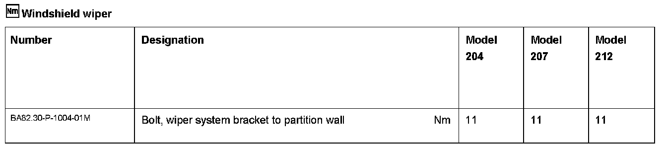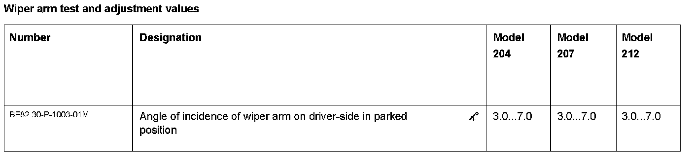 Wiper Arm Test And Adjustment Values: