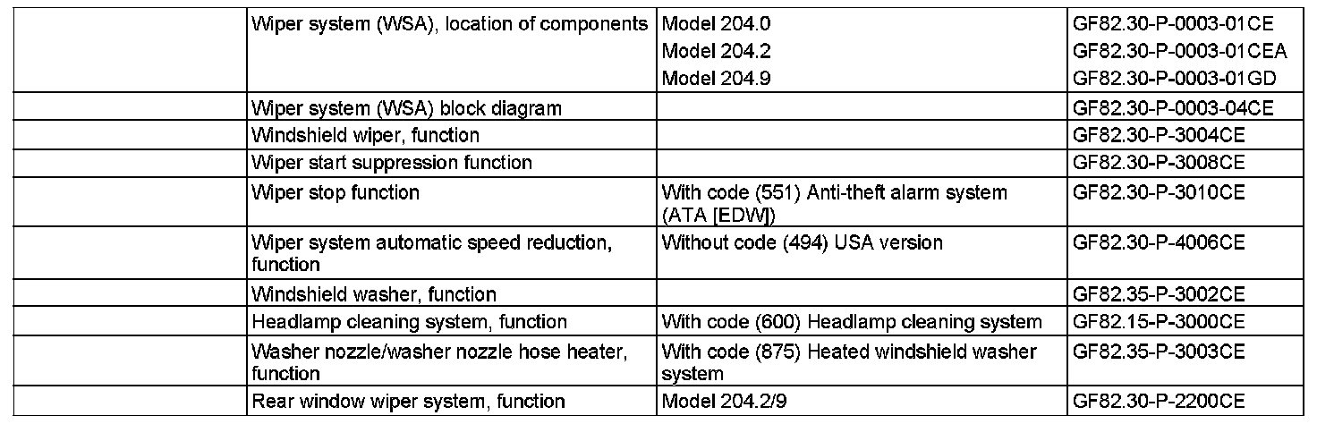 The wiper system controls the wiping and washing of the windshield and with model 204.2/9 the rear window