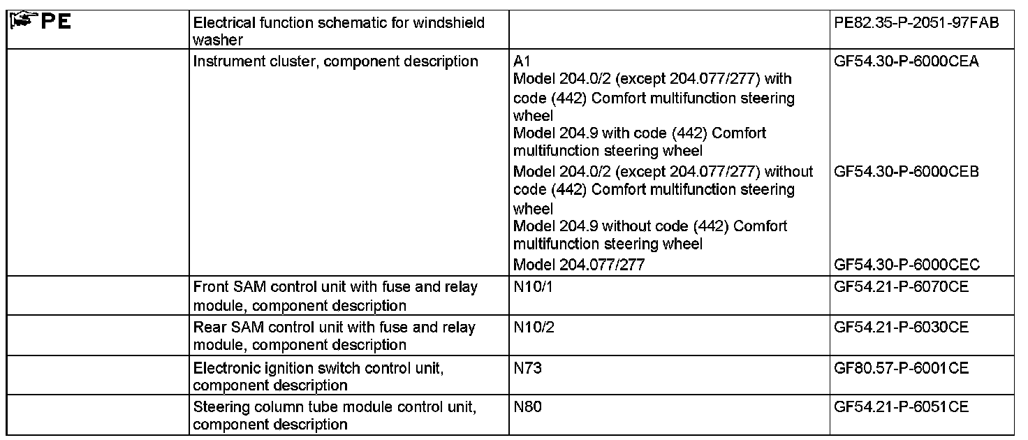 The washing function is activated by pressing the combination switch (S4) in axial direction beyond the detent point. The combination switch is read in by the steering column tube module control unit (N80).