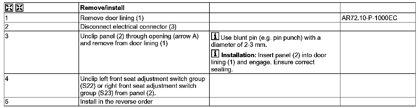 AR91.29-P-1700EC Remove/Install Seat Adjustment Controls