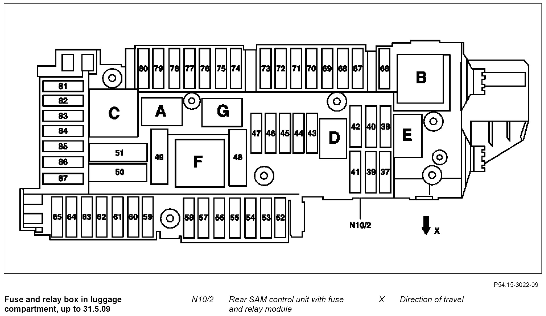 GF54.15-P-1257-04CE Relay Assignment Of Fuse And Relay Box In Trunk