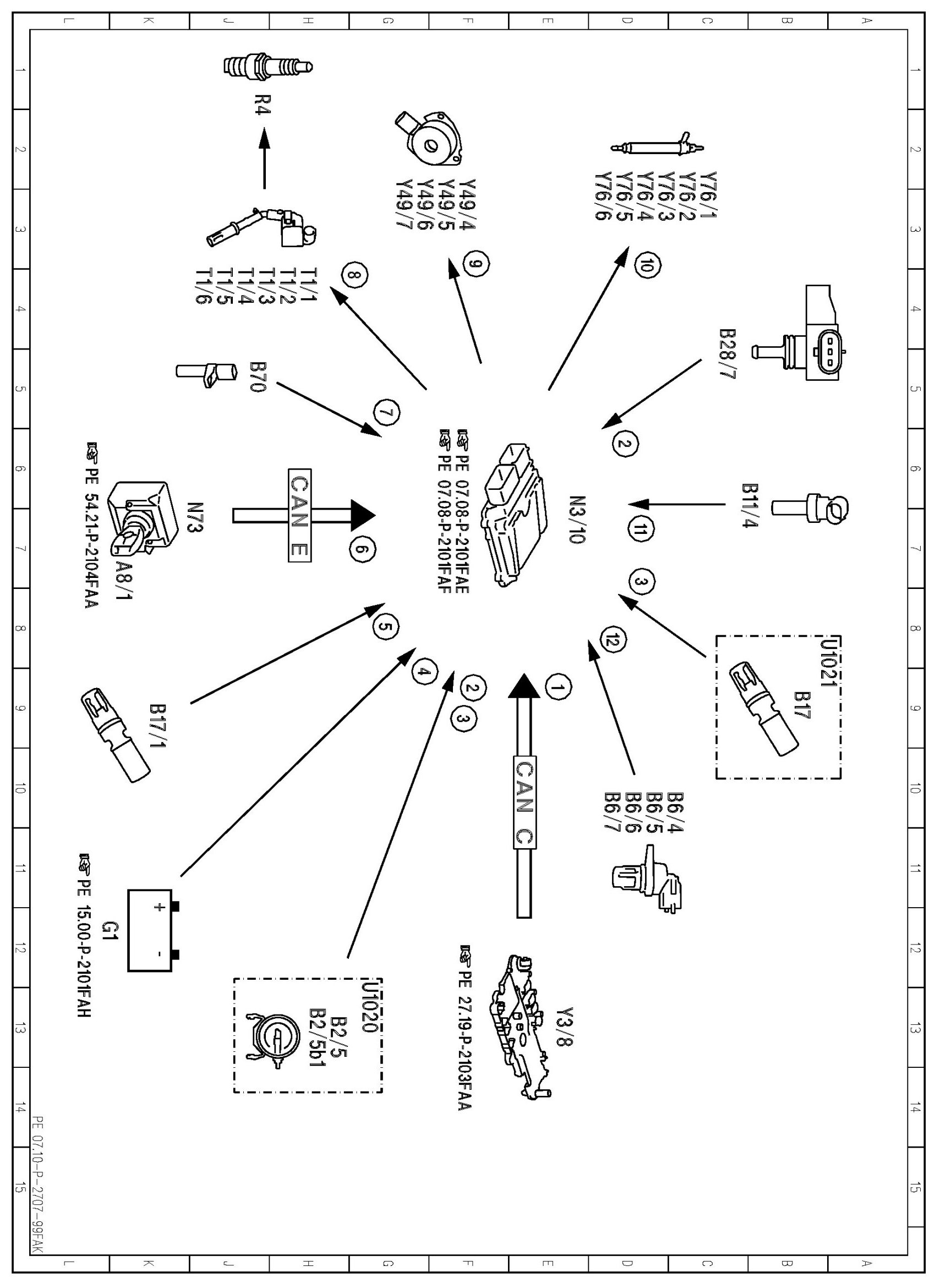 PE07.10-P-2707FAK Electrical Function Schematic For Start Phase, Post-Start Phase and Warm-Up Enrichment