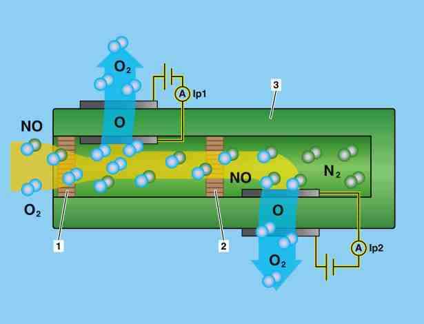 Schematic function diagram of the NOX sensor (double chamber sensors)