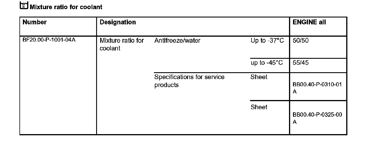 Mixture ratio for coolant: