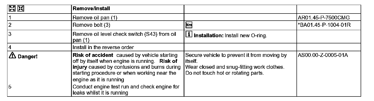 AR18.40-P-5113CMG Remove/install oil level check switch