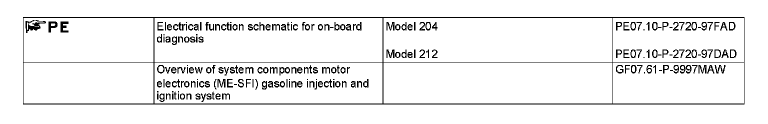 The diagnostic connector is networked via the chassis CAN and diagnostic CAN (CAN D) with the ME-SFI [ME] control unit. Stored fault codes and their fault freeze frame data as well as the readiness codes can be read out with the ignition ON or engine running via the diagnostic connector using a commercially available diagnostic unit or Xentry Diagnostics.