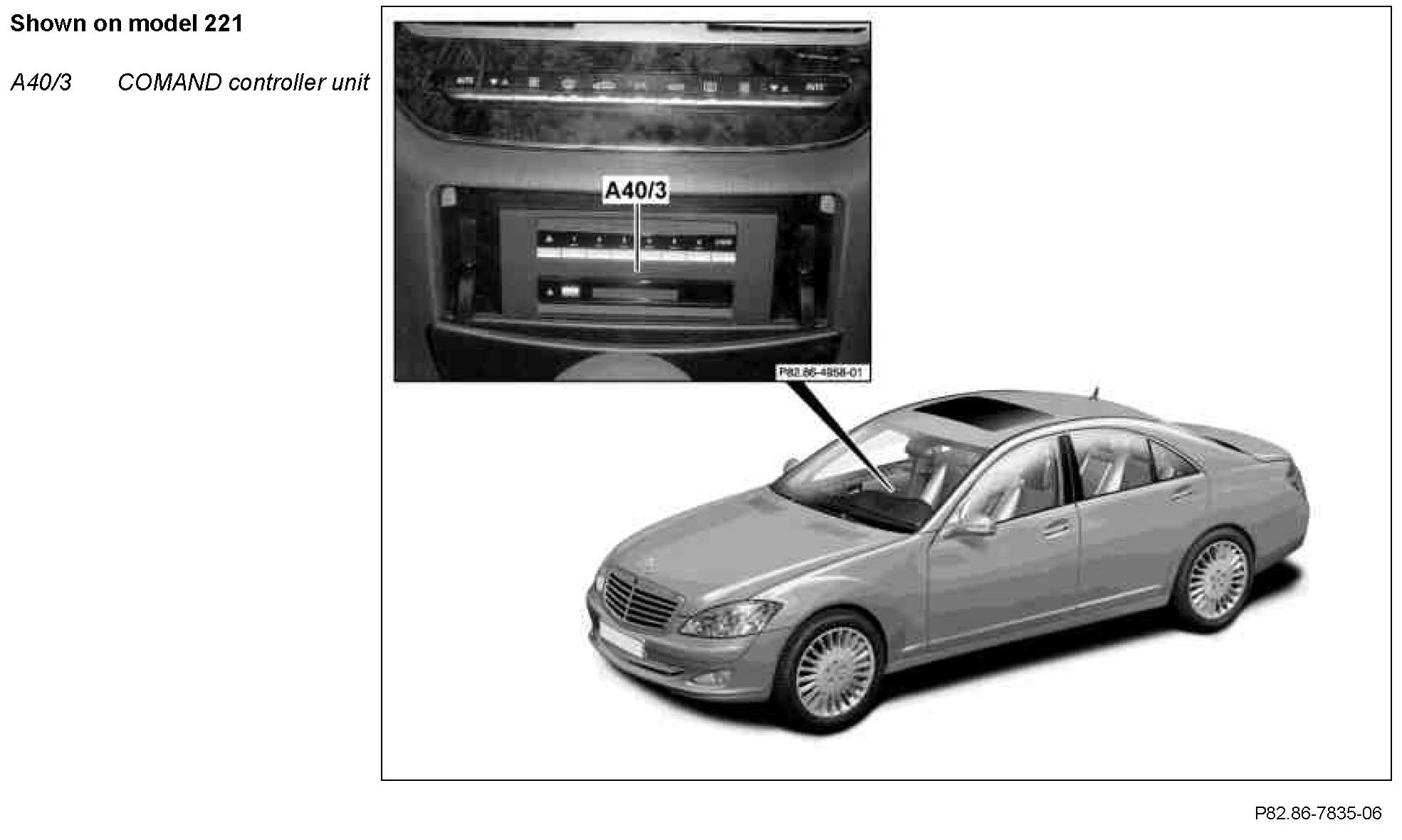 The COMAND controller unit provides the user with a structured and uniform interface via the COMAND display (A40/8). The COMAND controller unit generates uniform and user-friendly displays for all individual components integrated in the system.