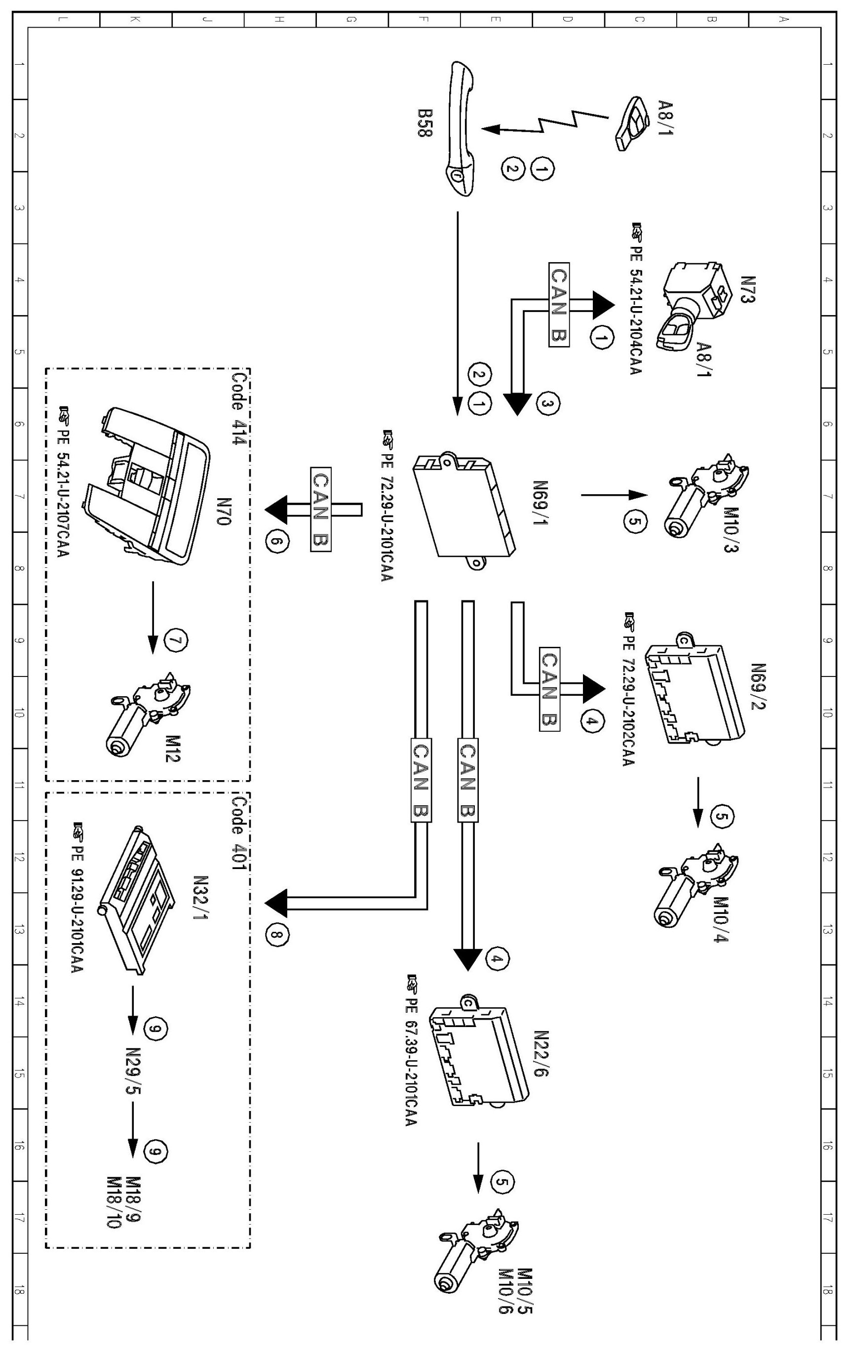PE80.45-U-2052CAA Electrical Function Diagram For Comfort Opening/Closing Over Transmitter Key