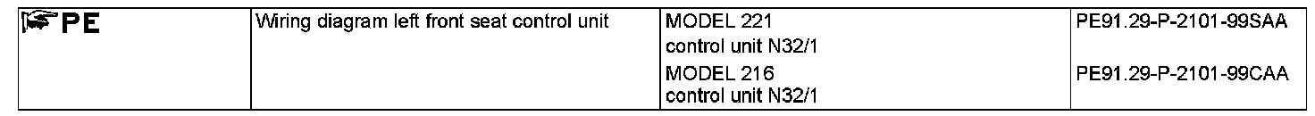- Left front seat operation switch group (S22) by the left front door control unit (N69/1) (model 221) or left door control unit (N69/1) (model 216)