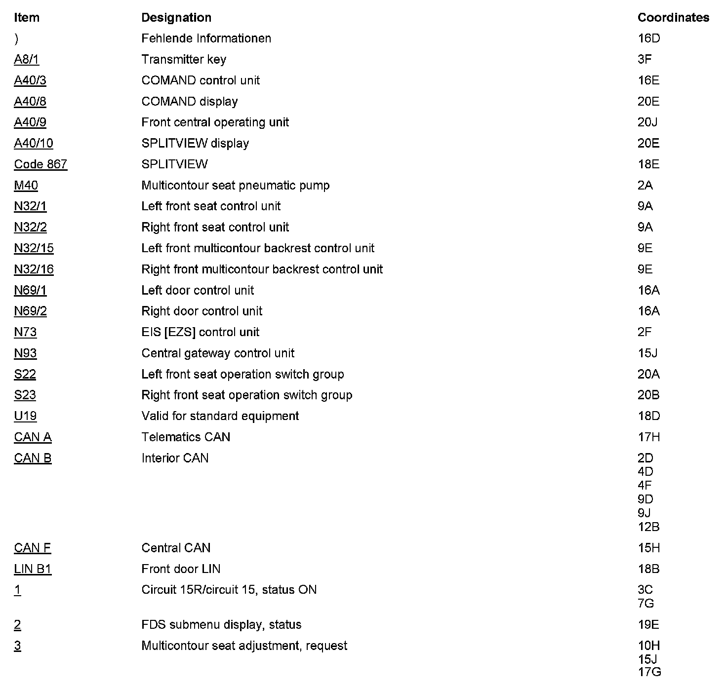 PE91.25-U-2051CAA Electrical Function Schematic For Multicontour Seat