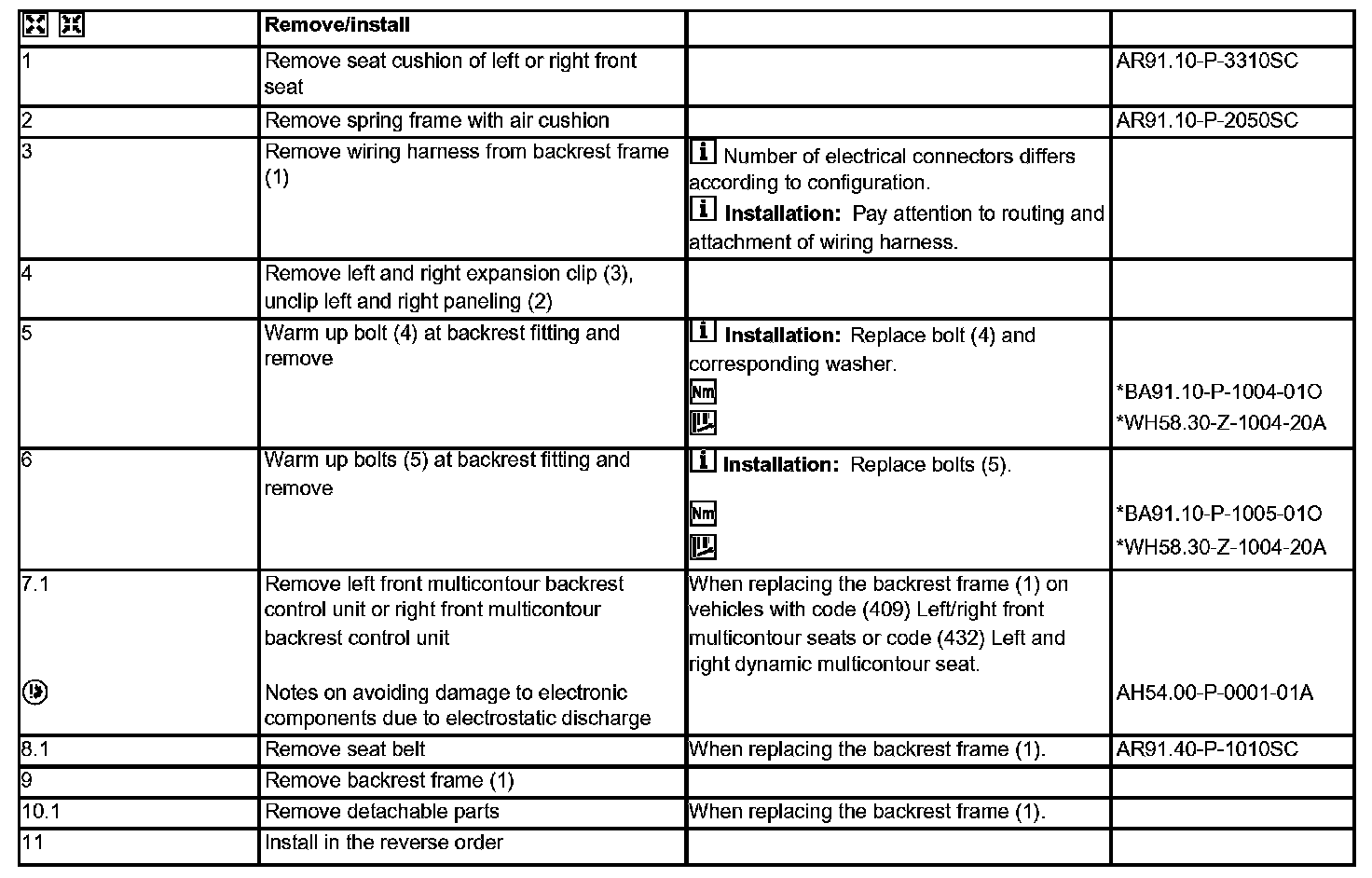 AR91.10-P-3331SC Remove/install Front Seat Backrest