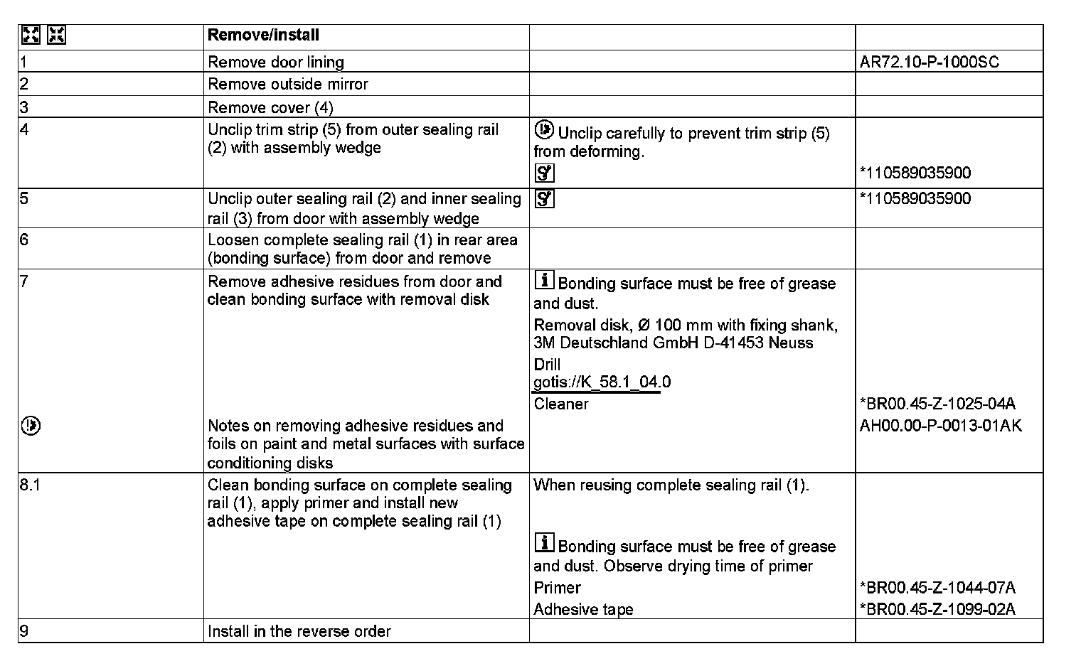 AR72.10-P-1610SC Remove/Install Sealing Rail