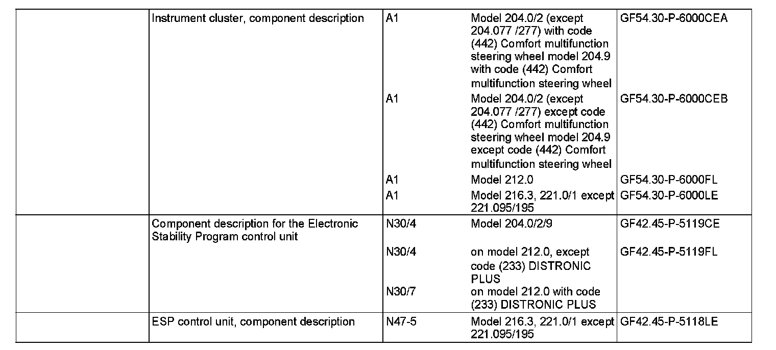 The ESP warning lamp or Electronic Stability Program (A1e41) signals in the IC (A1) when a wheel speed no longer agrees with the vehicle speed. It thus warns the driver that he has approached the physical driving limits with his vehicle.