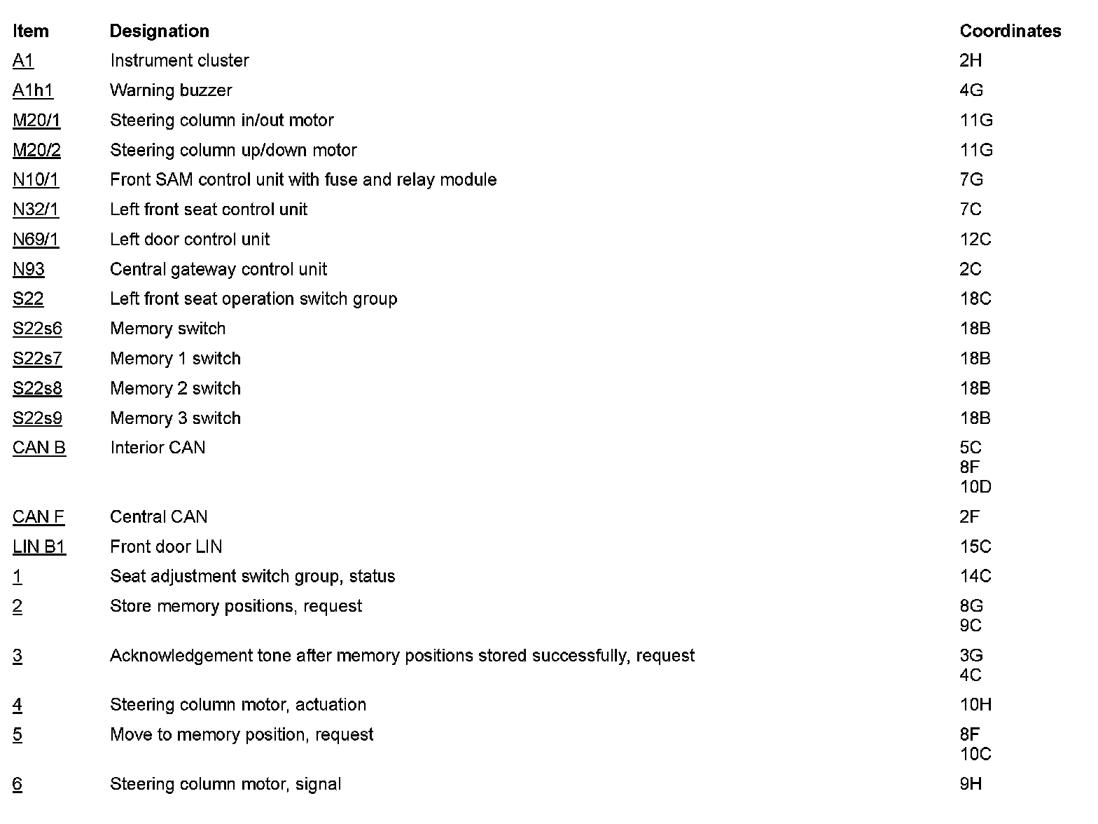PE46.15-U-2052CAA Electrical Function Schematic For Storing/Calling Up Steering Column Position