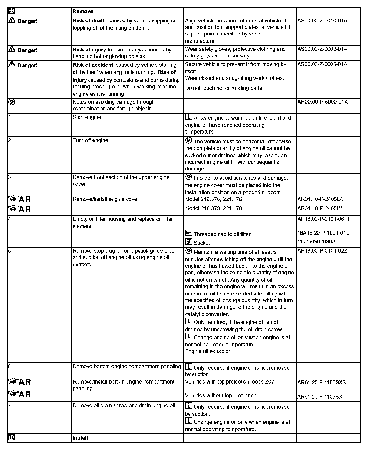 AP18.00-P-0101SZ Engine oil and filter change