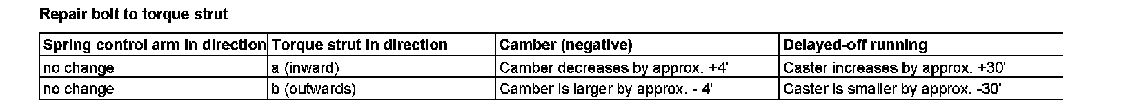 4 To adjust the camber and power-down, replace each standard bolt connection (A) to the torque strut (18) or spring control arm (17) with a repair bolt repair bolt (B).