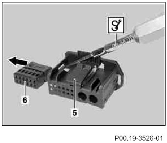 6 Remove connector housing (3) from cap (2) in direction of arrow.