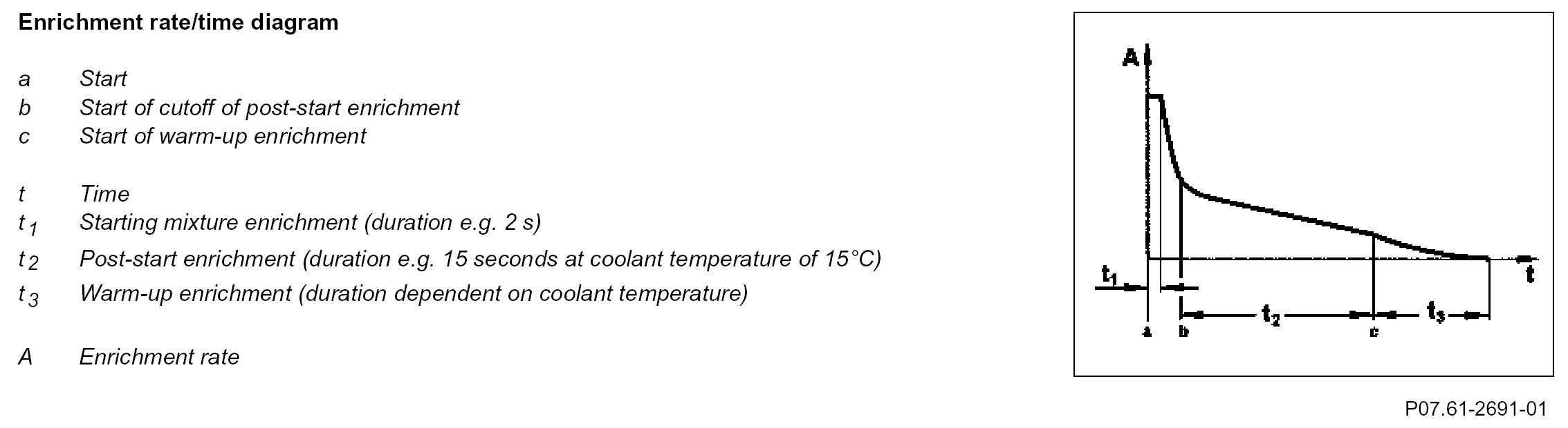 After a cold start the fuel-air mixture is enriched for a short time to ensure that the engine runs smoothly.
