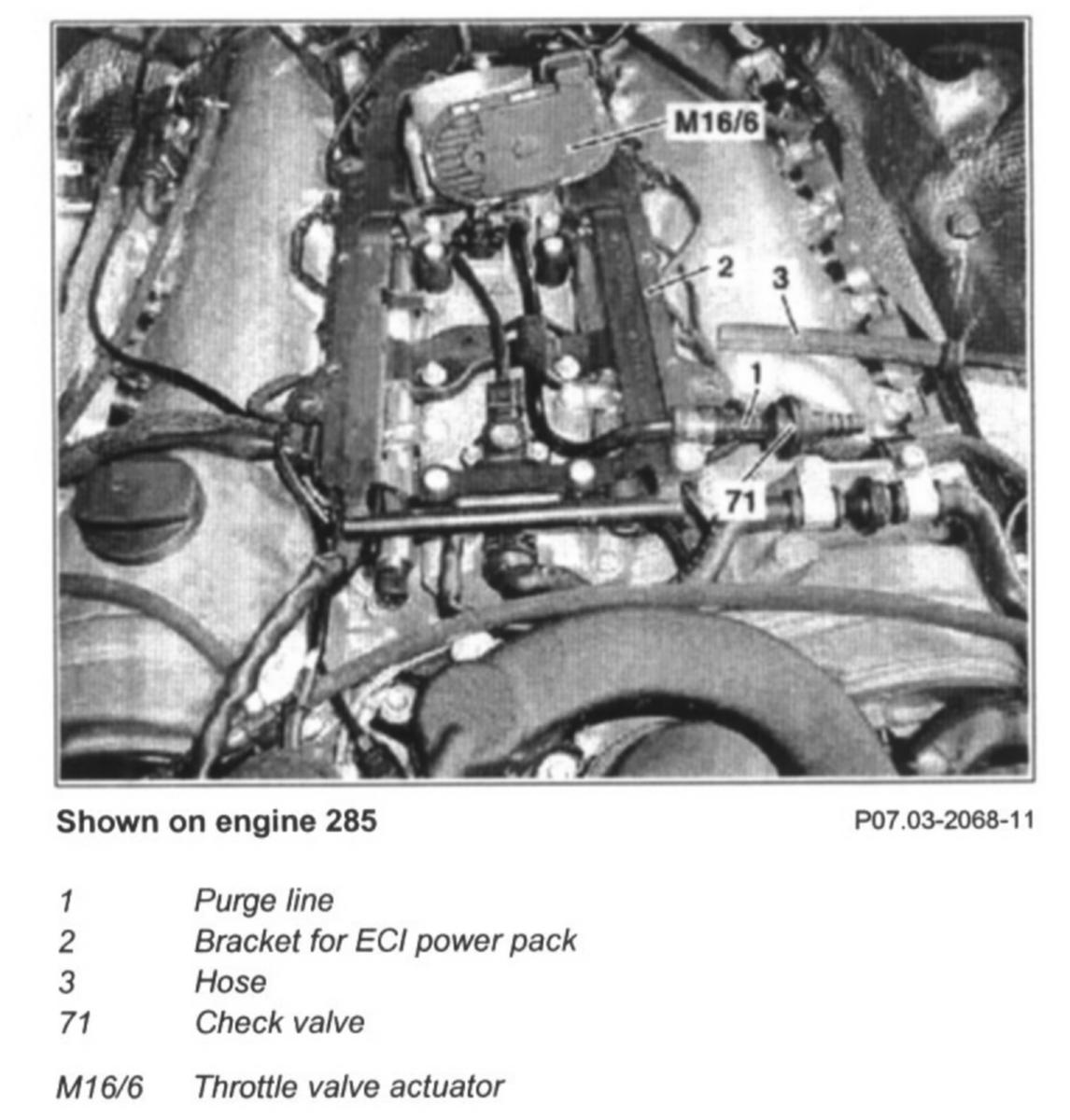 - Bolt bracket of purge line to bracket for ECI ignition system power pack = 8 Nm