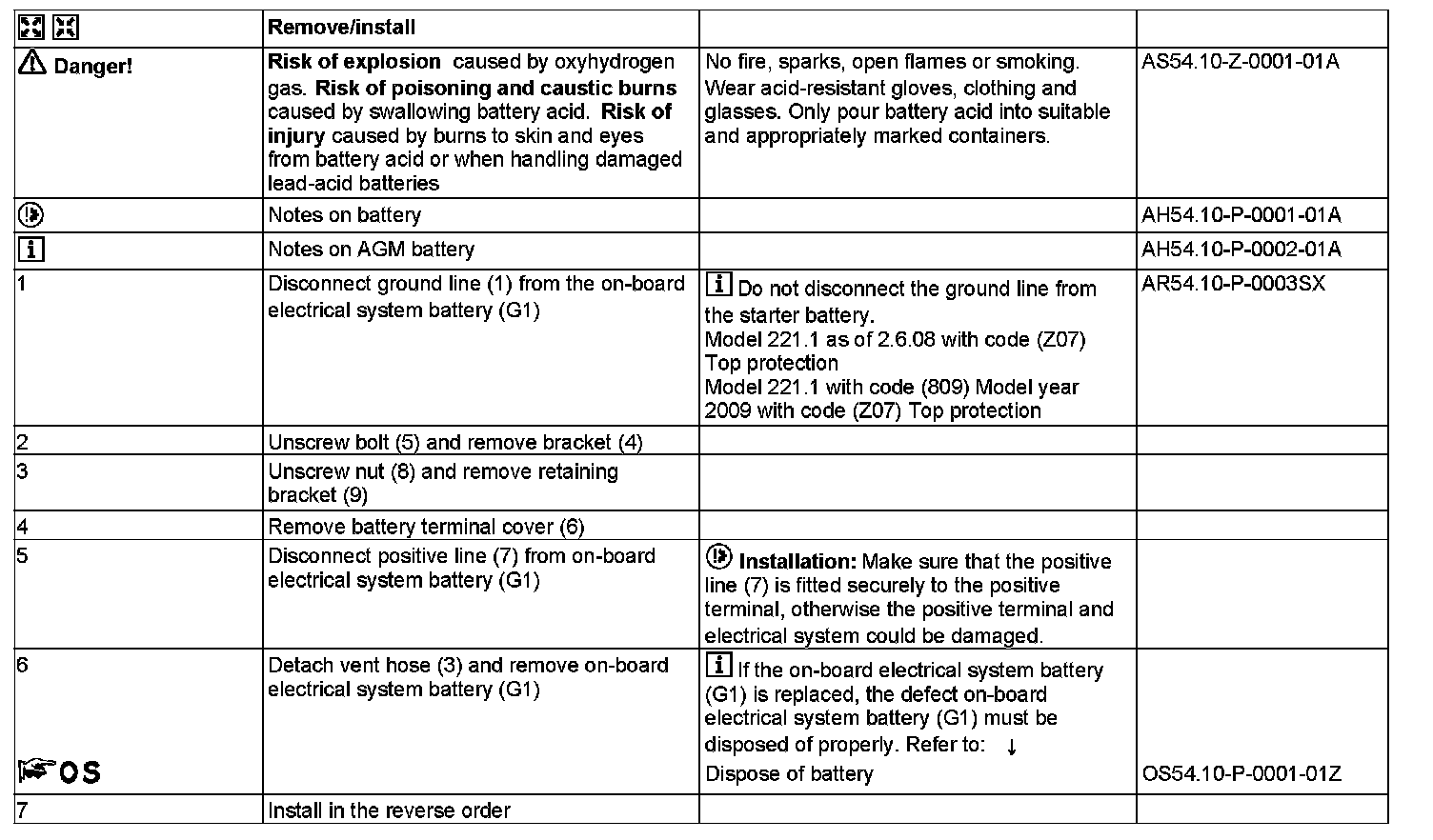 AR54.10-P-0009SY Remove/install On-board Electrical System Battery